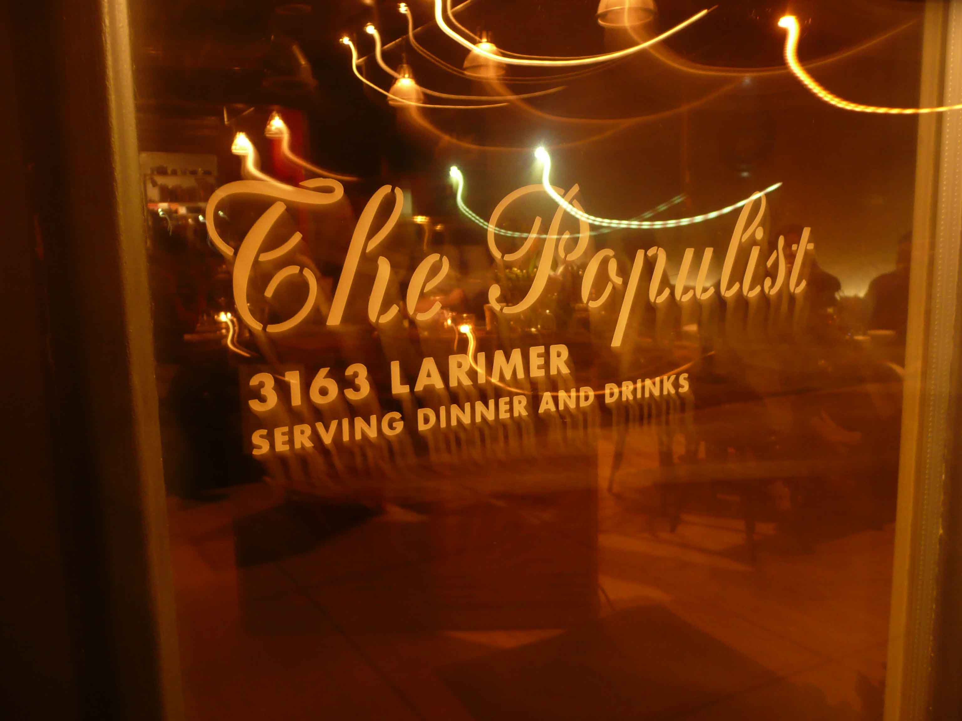 The buzz around dinner at The Populist in Denver includes that it is a hip place you go dressed in all black, that dinner seating is community style, and that you have to be a fan of house music. To be on the safe side, this former New Yorker did wear all black, but that put me in the minority of a foodie crowd of all ages who happened to be wearing nearly any color but black. We did have reservations at one of the smaller private tables, but most of the diners settled in to the handful of community tables that made strangers friends. Everyone feasted to the techno beat of house music.