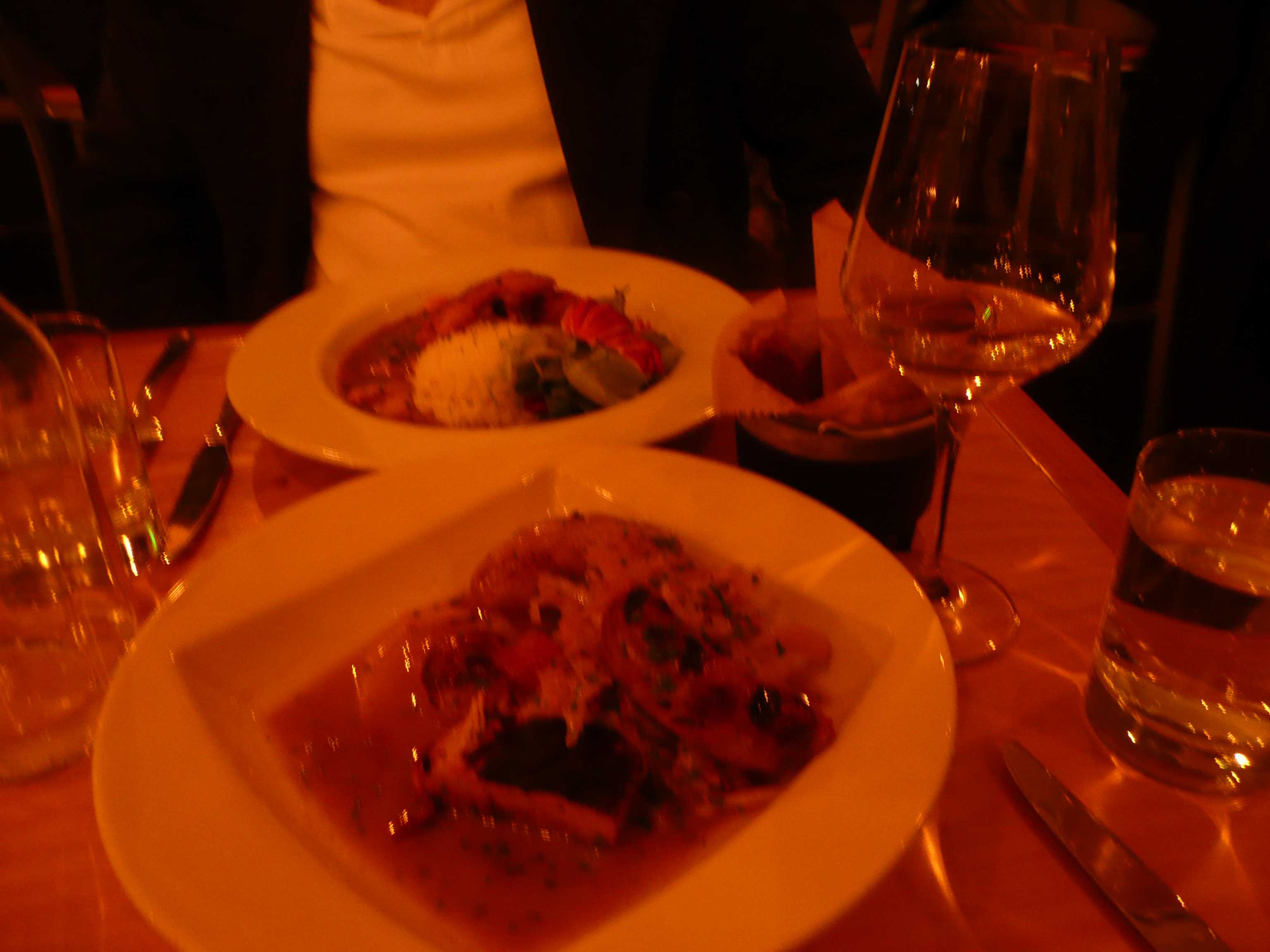 The Choucroute – a pork paradise – was recommended to pair with Prost Pils from Denver, but we opted for the Henninger Riesling 2011 in the Trocken or dry style. It paired well with both dishes. Gewurztraminer would have been another good choice. The residual sugar in a dry or off-dry Riesling or Gewurztraminer stands up well to fat in pork.