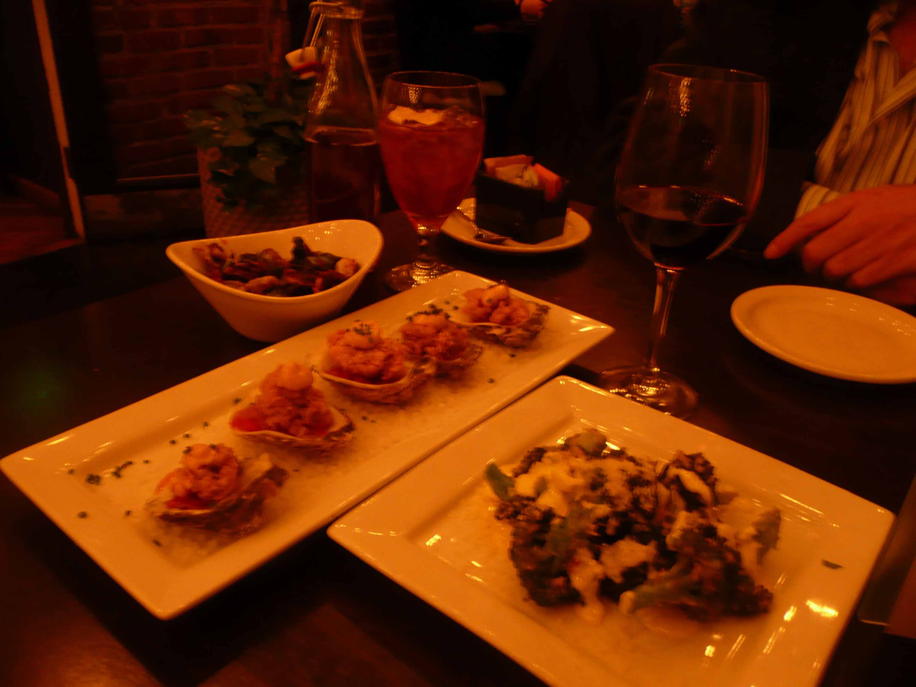 We added Crispy Fried Oysters with Peppadew Pepper Relish and Old Bay Aioli. All five of them disappeared quickly, down to the shell. Salads followed, a nicely prepared Fork & Knife Caesar and Simple House Salad with Bleu Cheese Dressing.