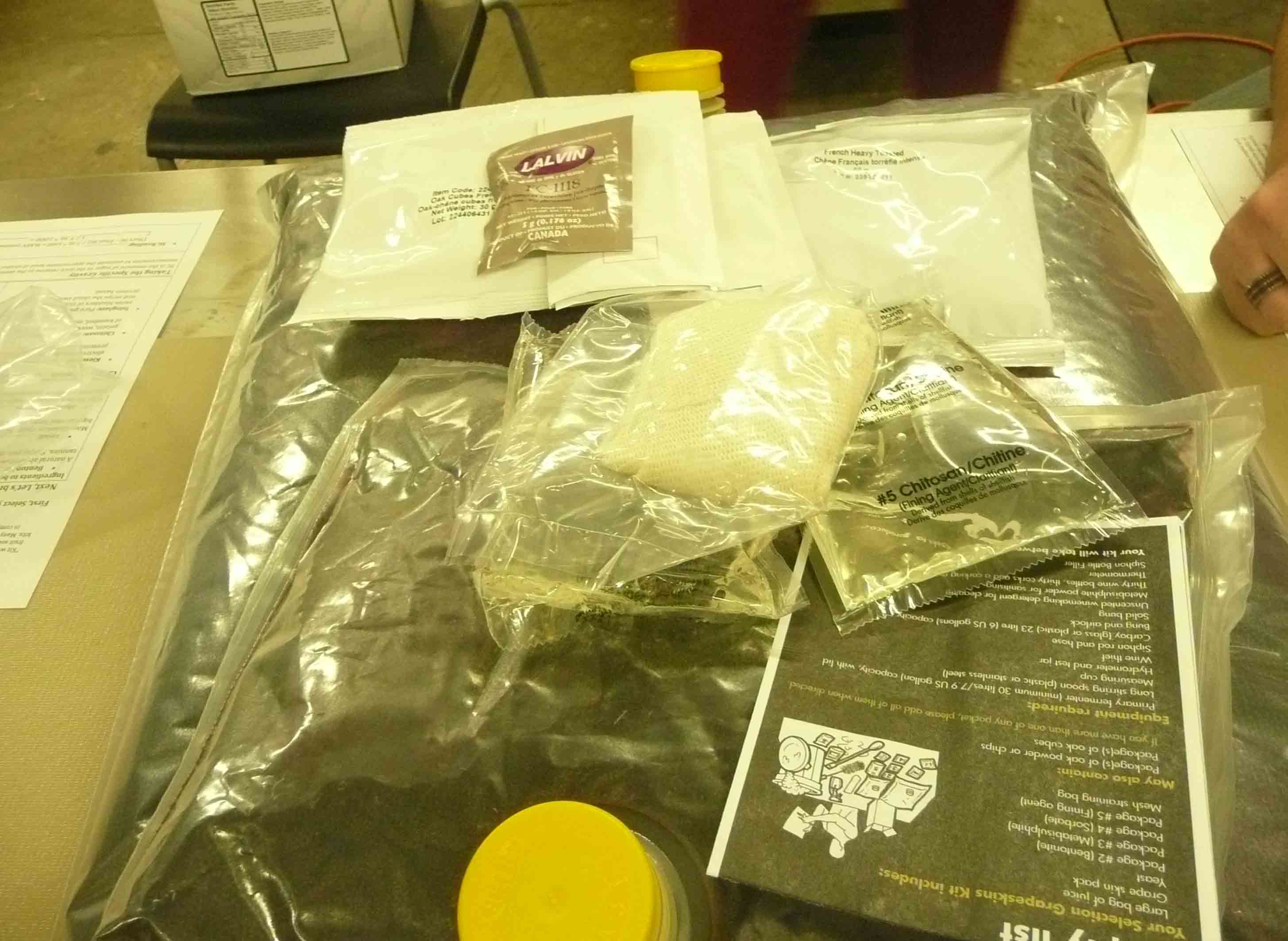 Bags of grape juice concentrate, grape skins, yeast, and fining and stabilizing agents.