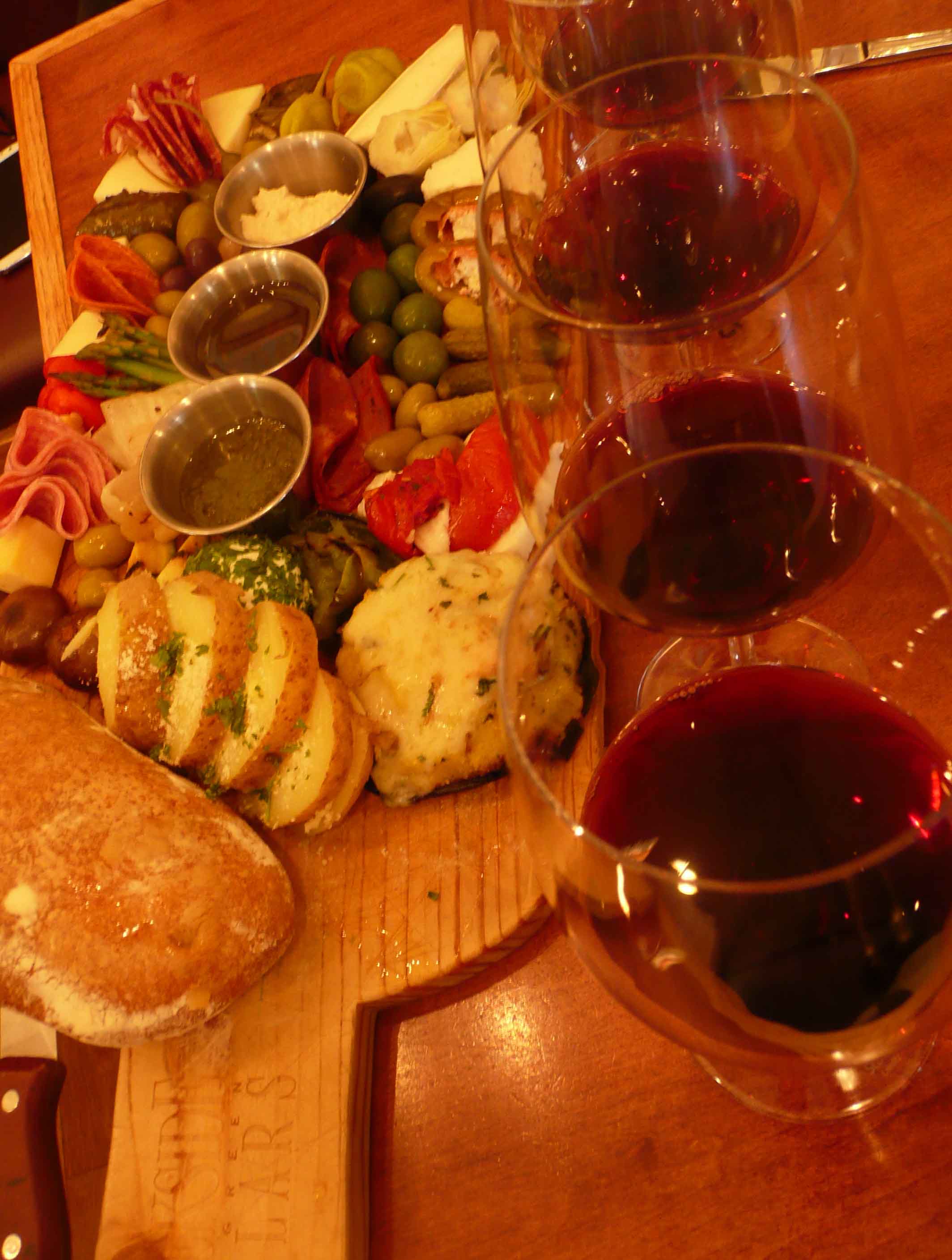The Italian Antipasto Platter is billed as “Not just a meal, it’s a memory.” It offers an enormous assortment of imported cheeses, olives, meats, grilled and marinated vegetables, stuffed peppers, a loaf of ciabatta bread, and trio of dipping sauces and oils. What a feast!