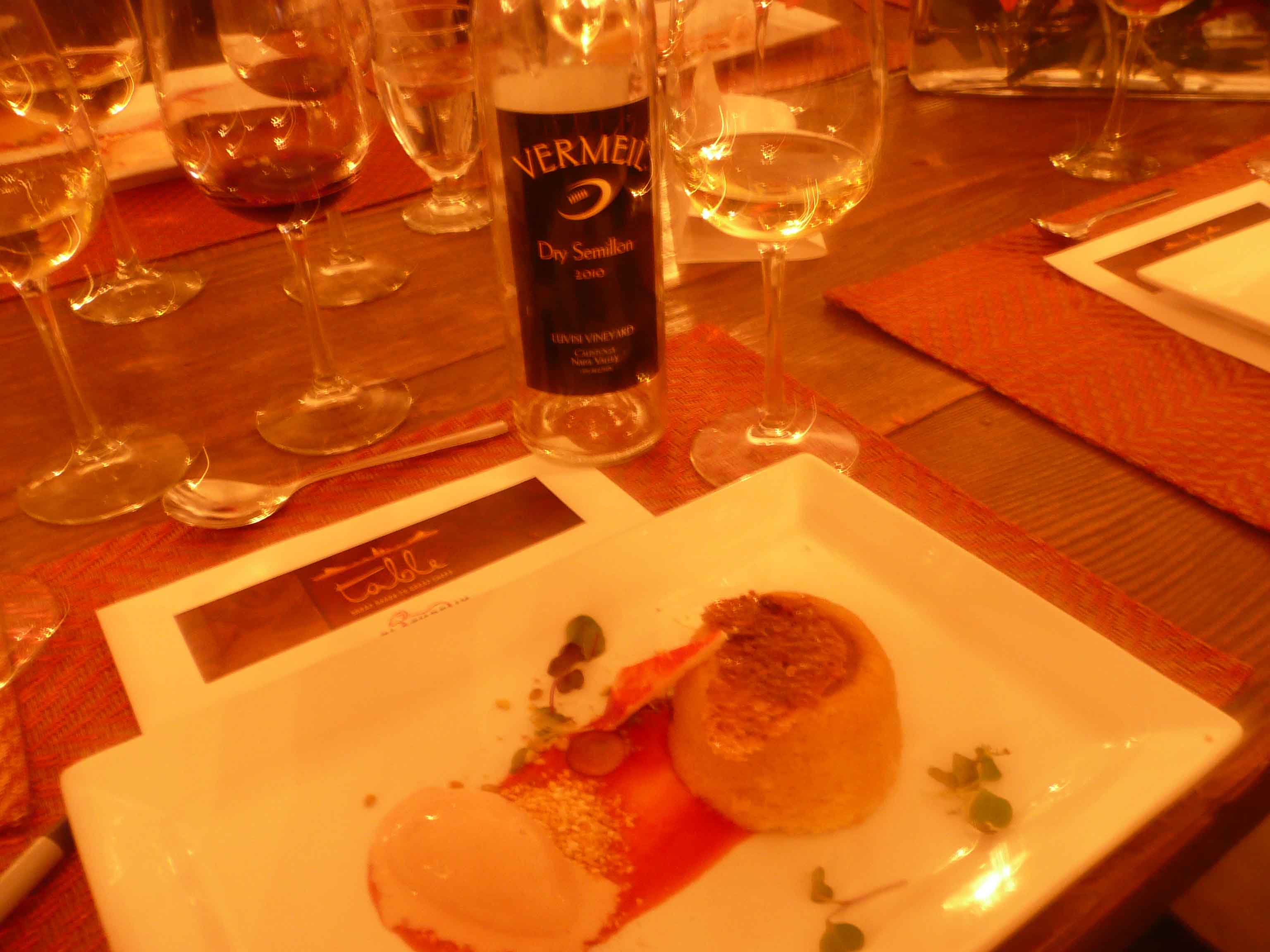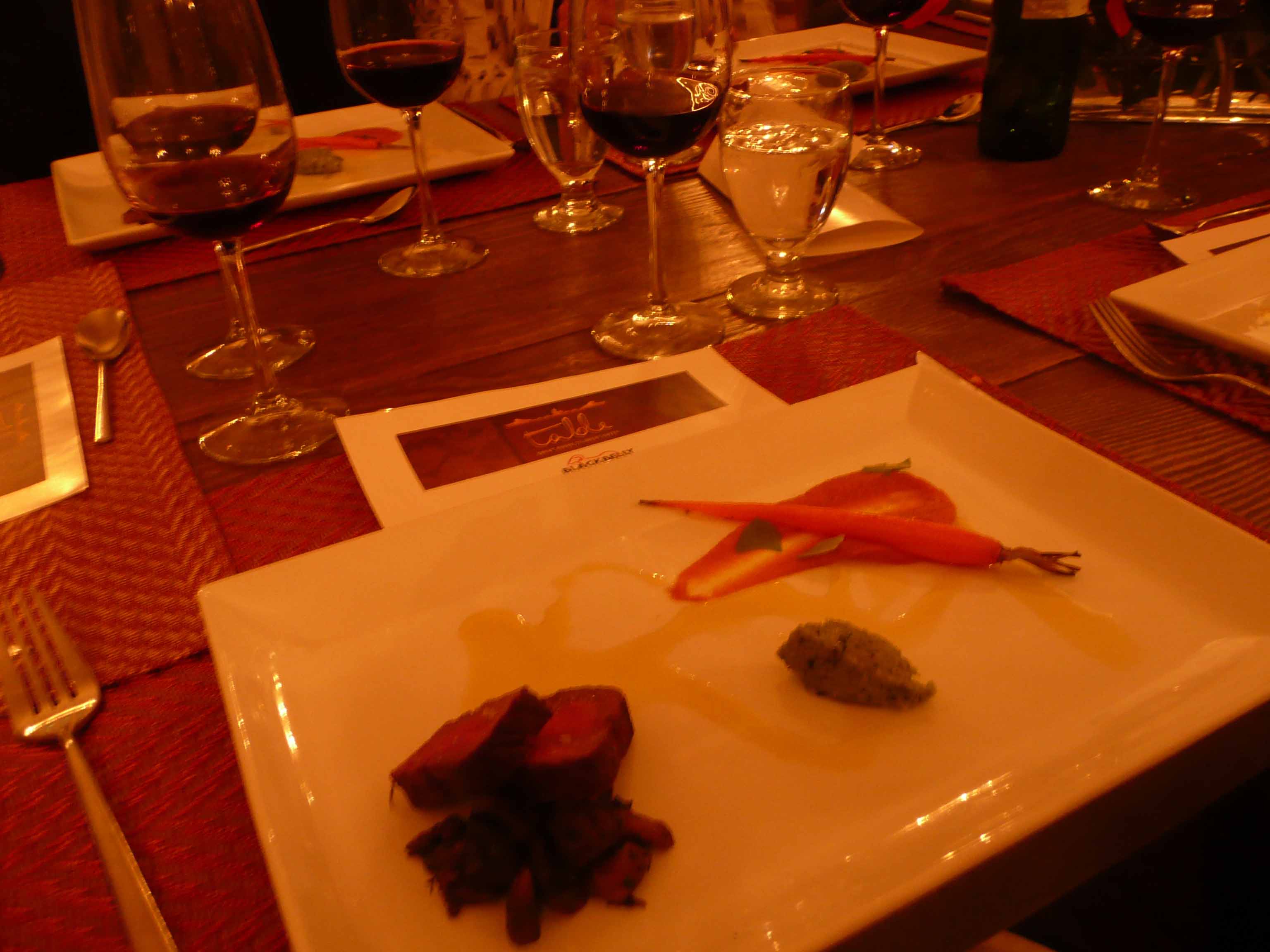 Fourth Course – Colorado Lamb Loin with a Fava Bean-Mint Pesto with Carrots and Morel Mushrooms, finished with a drizzle of Nice Olive Oil. It was paired with Altocedro Tempranillo 2011 from Mendoza, Argentina. It was classic and inventive at the same time, every bite delicious.