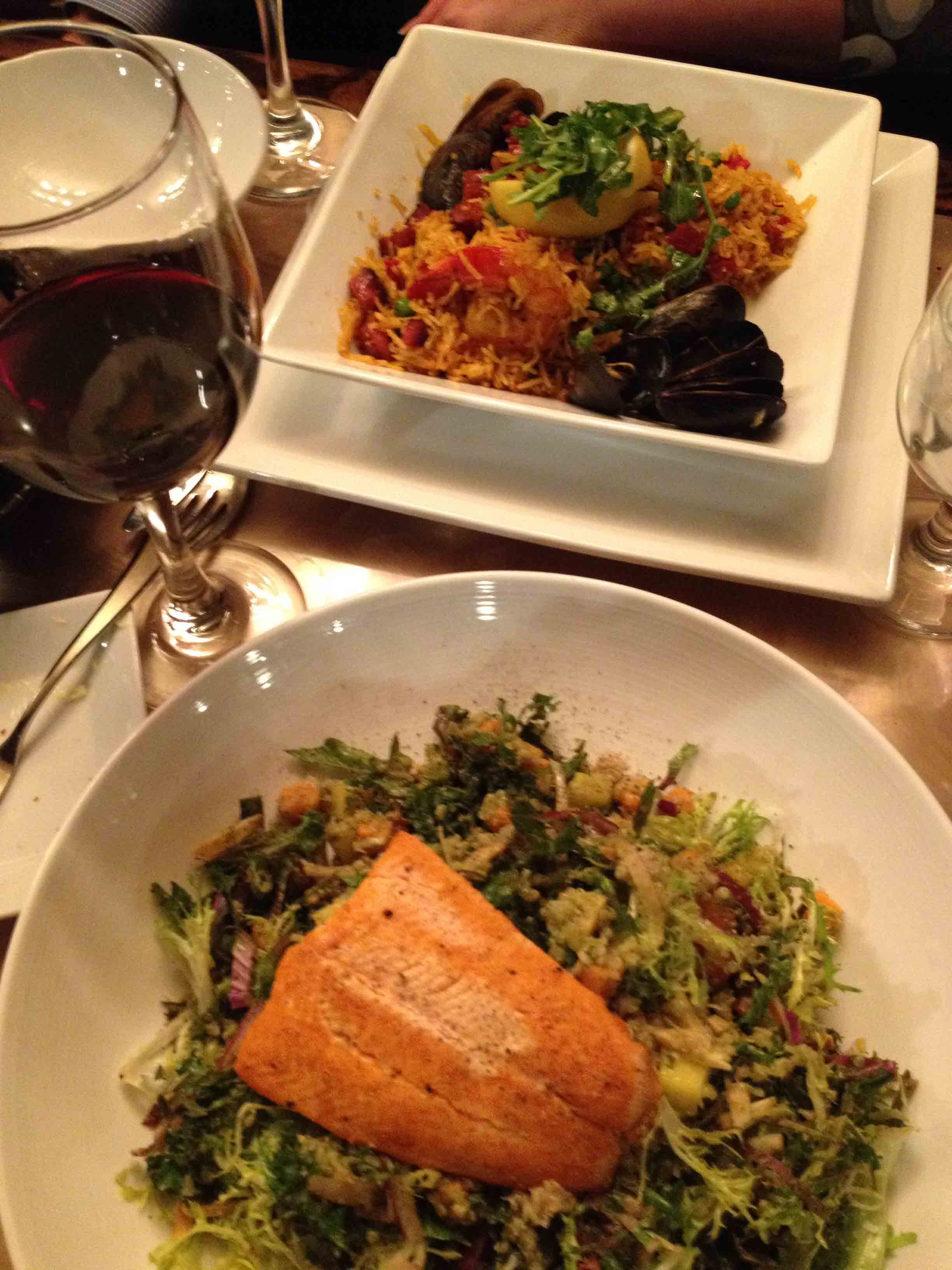 Spanish Paella with Andouille, Mussels, White Shrimp, Saffron, Peas, and Rice. Two in our group opted for this traditional dish, and were very pleased. It paired nicely with both the white and red wines.