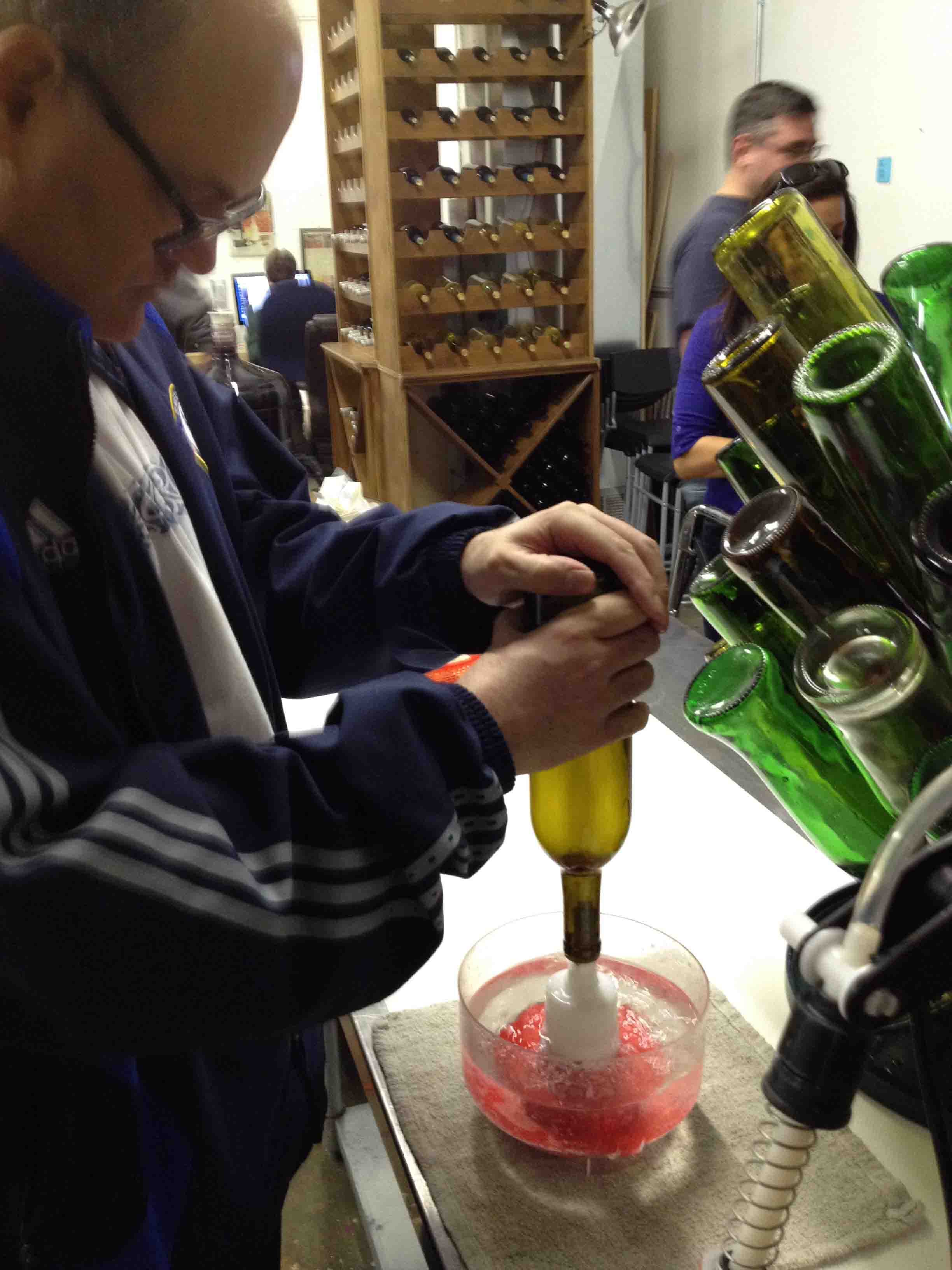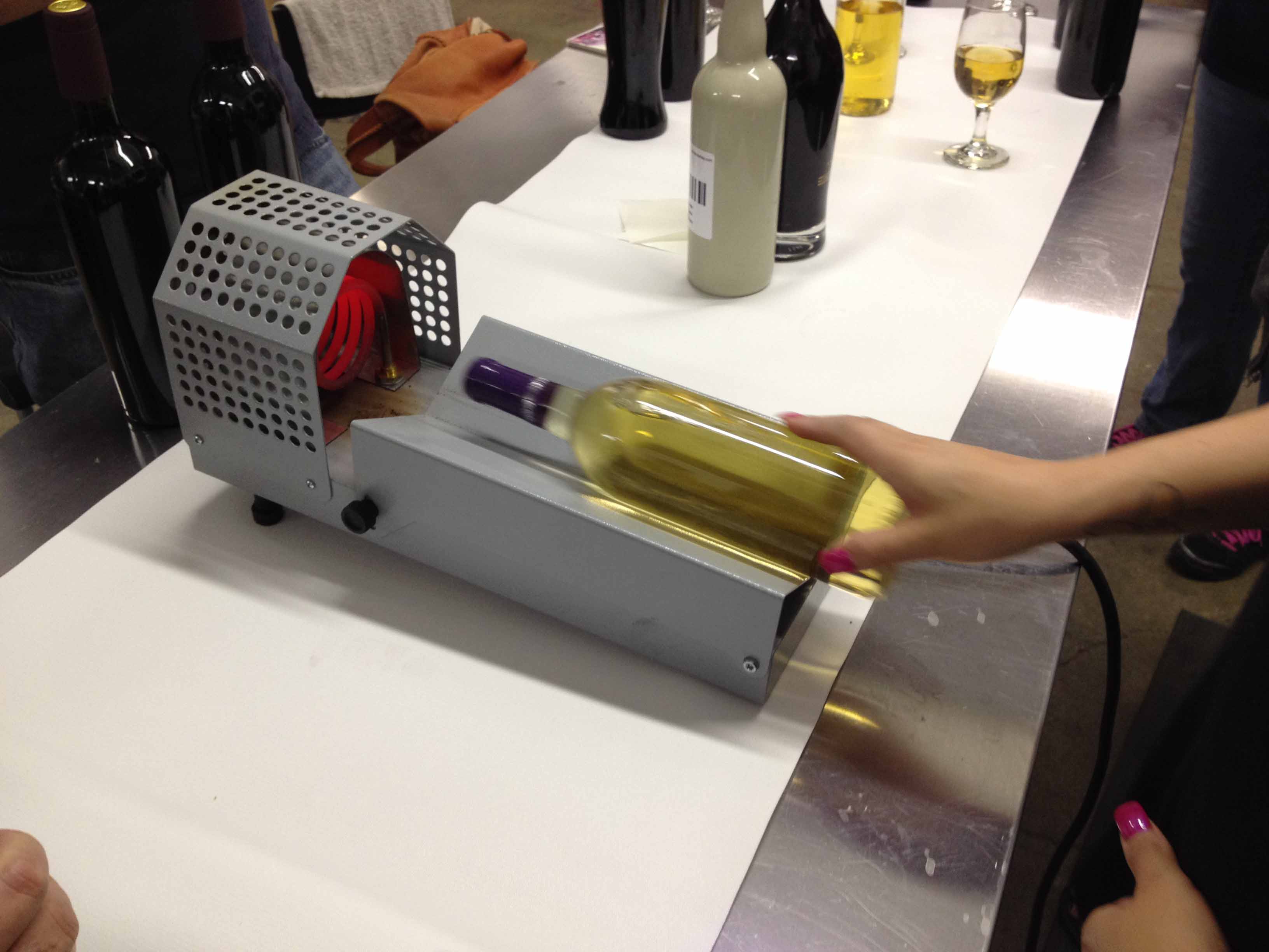 Foiling the bottles. Above: our Malbec. Below, a white-wine lover foils her bottle of Chardonnay.
