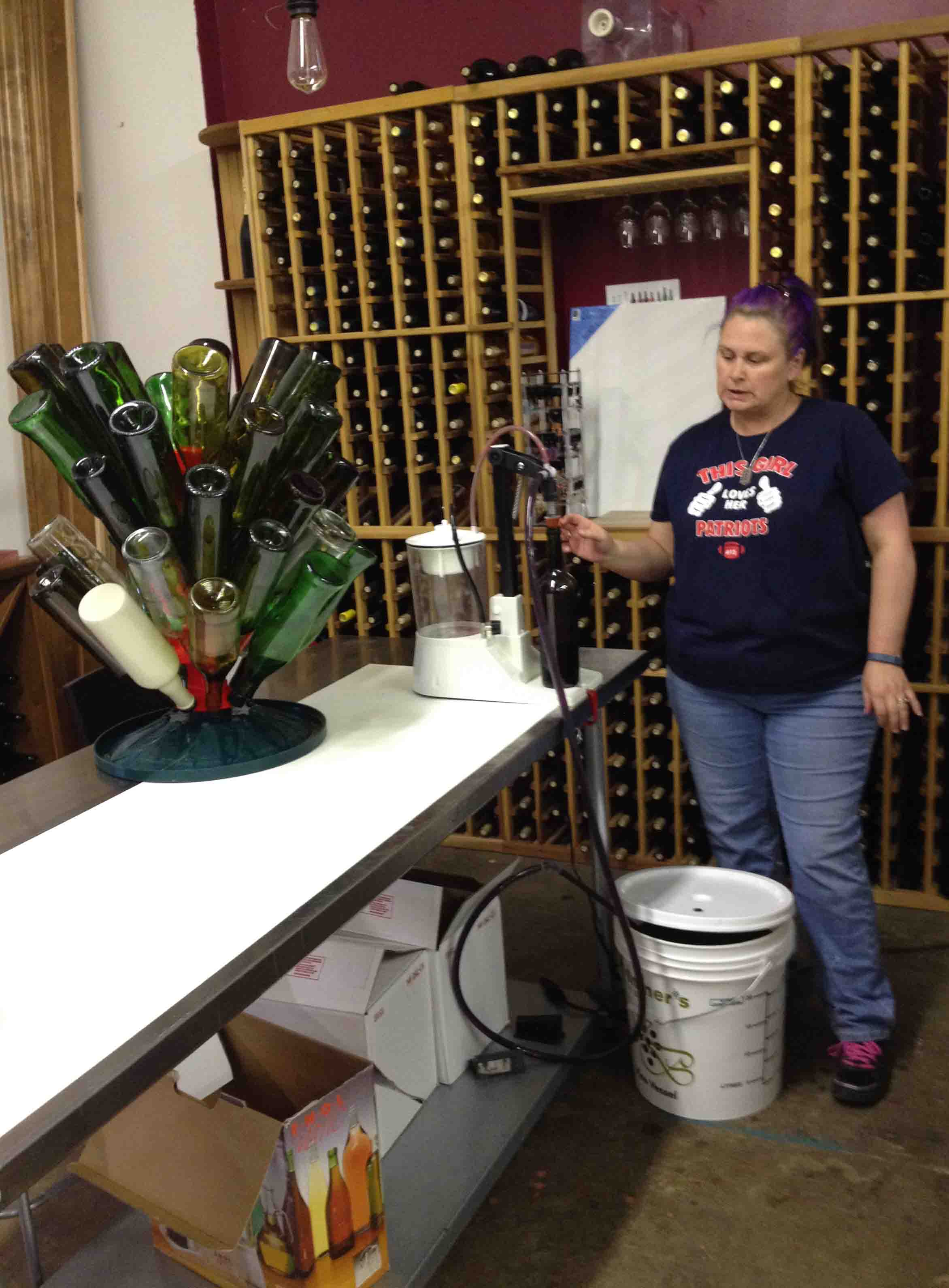 Students in our Beginner Wine Class returned to Wine & Whey to bottle our baby Malbec. This turned out to be the easier and less time-consuming part of the wine-making process. A month earlier we had spent a leisurely afternoon at Wine & Whey tasting wine and choosing our kit, then going through the steps from kit to carboy. This time we: (1) washed bottles, (2) filled bottles), (3) corked bottles, (4) foiled bottles, and (5) labeled bottles.