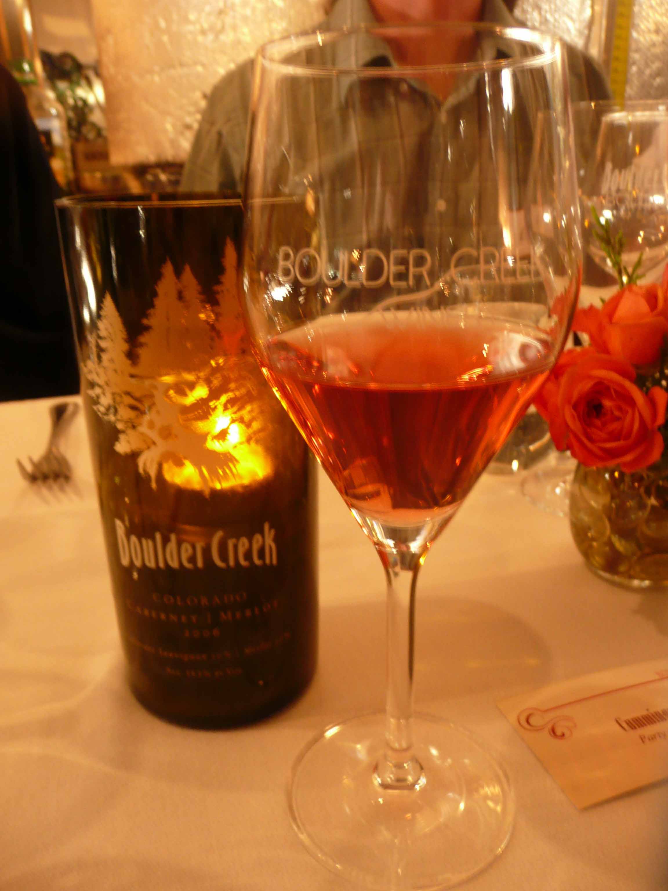 Boulder Creek Winery owners Jackie and Mike Thompson welcomed everyone with a glass of their newly released 2013 Dry Rosé. The festively hued glass of fuchsia wine was made from Syrah grapes due to the bad winter in Colorado’s Grand Valley, where the Merlot grapes froze. The spicy, more intense rosé was a departure from the pale pink Provence-style rosé for which Boulder Creek is known. The rosé made an excellent aperitif.