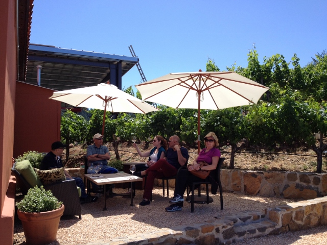 * Rosé of Pinot Noir, Russian River Valley, 2013 – this subtle Provençal-style wine offered a taste of spring and summer, with juicy goodness followed by food-friendly dryness. Drinking this wine with the valley spread out below was particularly nice. The fuchsia color came from leaving the wine on its skins for two days.