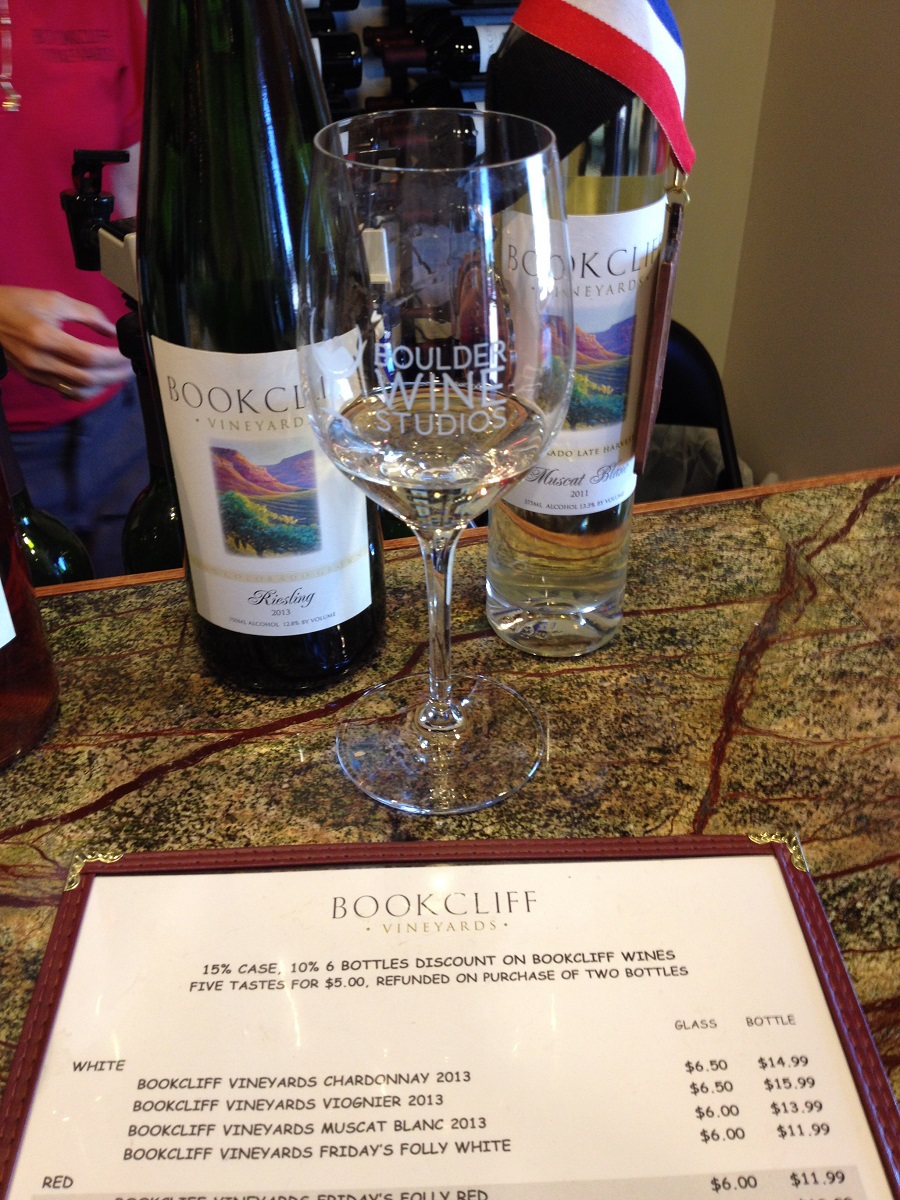 Co-owner Ulla Merz welcomed tasters to the wine bar. BookCliff Vineyards poured a choice of tastes from their full selection. My picks: 2013 Muscat Blanc, 2012 Cabernet Franc (Reserve), 2012 Syrah (Reserve), 2012 Cabernet Sauvignon, and 2012 Malbec. Two of five delicious tastes: