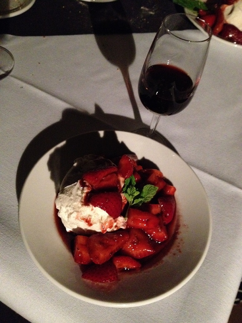 Creekside Cellars Late Bottled Vintage Port, paired with Macerated Organic Strawberries in Aged Balsamic with Black Pepper, served over Vanilla Bean Ice Cream.